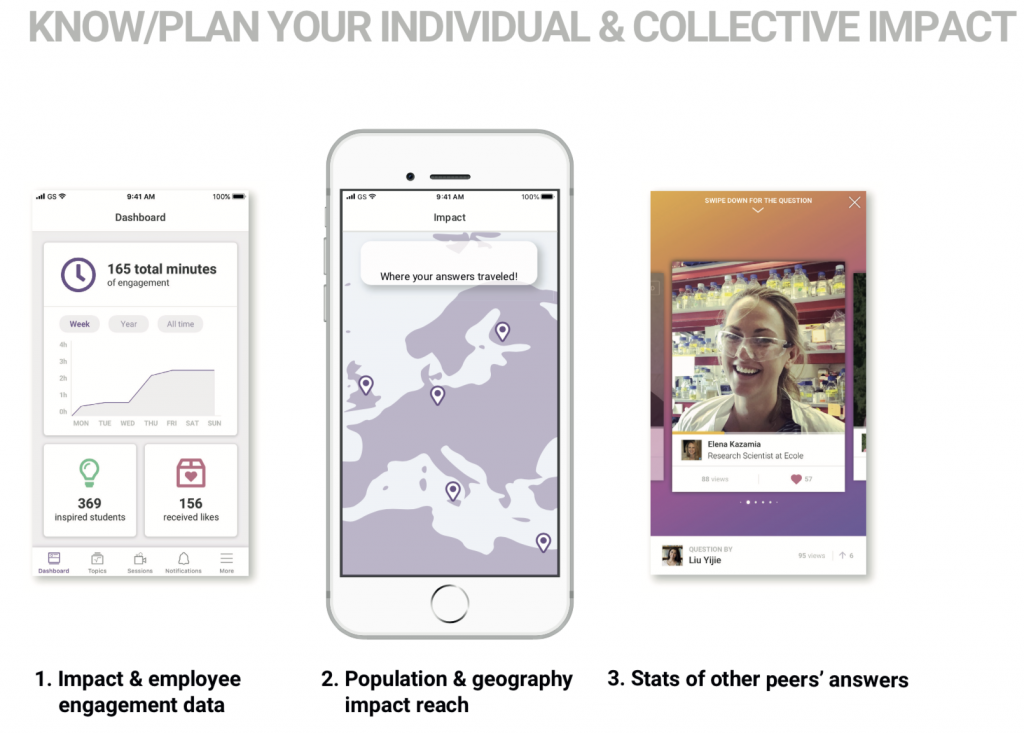 Και στις δύο περιπτώσεις οι εργαζόμενοι λειτουργούν ως ψηφιακοί μέντορες από τα σπίτια ή από το γραφείο τους, απαντώντας ασύγχρονα ή ζωντανά, όποτε και αν το επιθυμούν. Το ενδιαφέρον είναι ότι ο μέσος όρος ασχολίας ενός εργαζόμενου μέντορα είναι κατά προσέγγιση πέντε λεπτά/εβδομάδα, γεγονός το οποίο καλύπτει περίπου ένα μέγεθος της τάξης των 500 mentees/έτος, μαθητών ή συναδέλφων του σε όλο τον κόσμο.