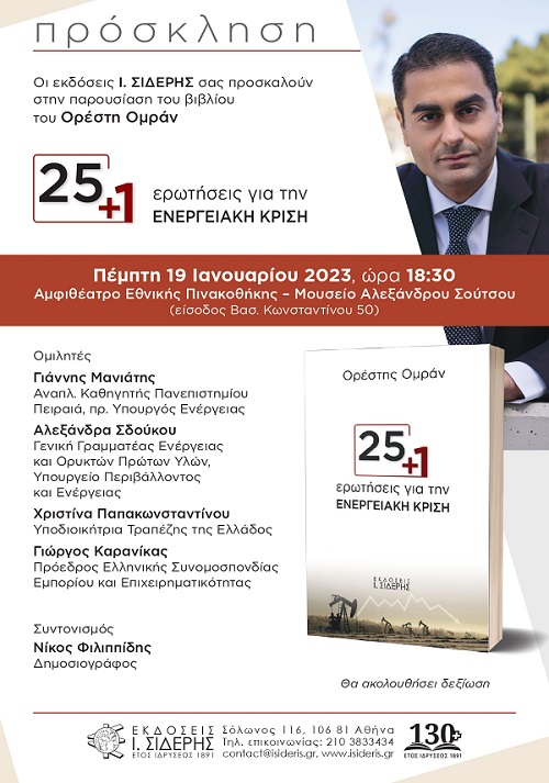 Σε μια περίοδο κατά τη διάρκεια της οποίας η ενέργεια έχει καταστεί κεντρικό ζήτημα συζήτησης, επηρεάζει και επηρεάζεται από την οικονομία, τη γεωπολιτική και τις διεθνείς σχέσεις και επιδρά στην καθημερινότητα όλων μας, ο Ορέστης Ομράν αποκωδικοποιεί την ενεργειακή κρίση και απαντά σε 25+1 βασικά ερωτήματα που τη συνθέτουν.