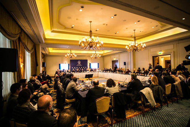 Διευθύνων Σύμβουλος του Ευρωπαϊκού Μηχανισμού Σταθερότητας Klaus Regling,ο πρώην Πρόεδρος της Ευρωπαϊκής Κεντρικής Τράπεζας Jean-Claude Trichet, ο Niall Ferguson, Milbank Family Senior Fellow, Hoover Institution, Stanford University, ο Robert Kagan, Stephen & Barbara Friedman Senior Fellow, The Brookings Institution.