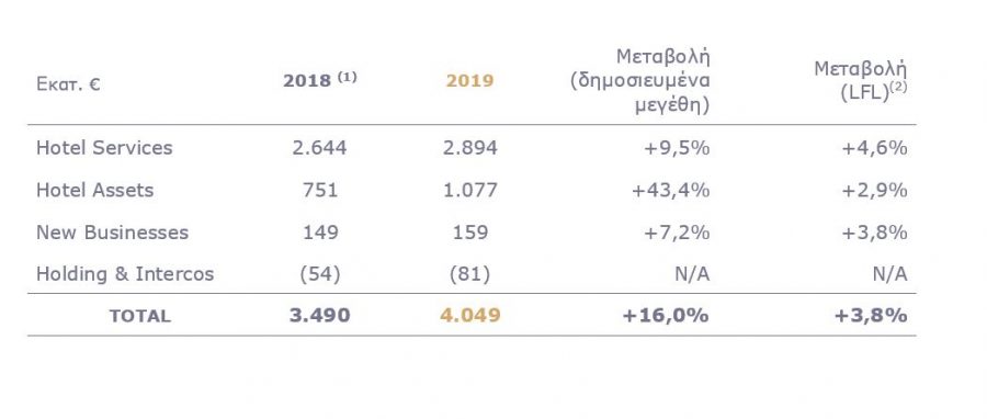 Ο ενοποιημένος κύκλος εργασιών για τη χρήση 2019 διαμορφώθηκε σε 4.049 εκατ. ευρώ σημειώνοντας οργανική αύξηση (Like-for-like) κατά 3,8% και αυξημένος κατά 16% σε σχέση με τη χρήση 2018.