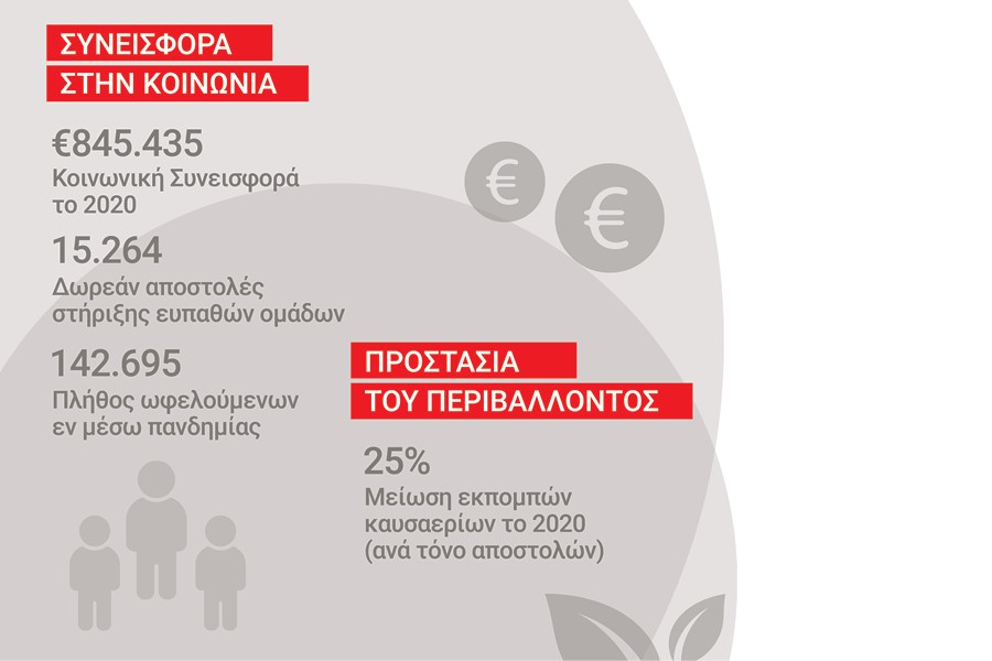 Αναγνωρίζοντας τη σπουδαιότητα της προστασίας του φυσικού µας πριβάλλοντος, µεταξύ άλλων στηρίζουµε οικονοµικά περιβαλλοντικές οργανώσεις, µεταφέρουµε δωρεάν υλικοτεχνικό εξοπλισµό στα σηµεία όπου προγραµµατίζονται περιβαλλοντικές ενέργειες, τοποθετούµε σταθµούς φόρτισης ηλεκτρικών οχηµάτων σε καταστήµατά µας και παρέχουµε οικονοµική στήριξη σε δράσεις περιβαλλοντικού ενδιαφέροντος.