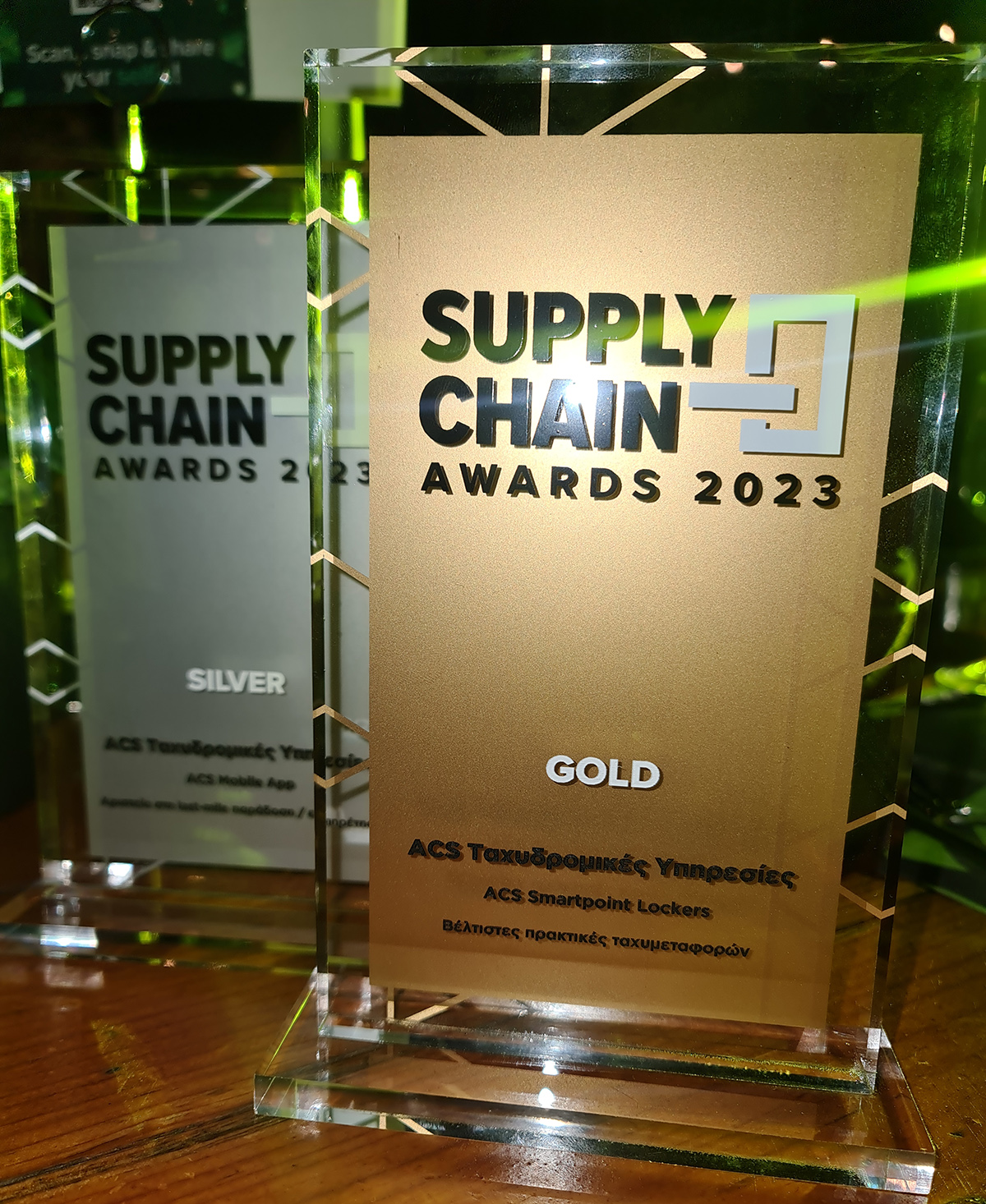 Η ACS έλαβε ένα χρυσό και ένα ασημένιο βραβείο στα Supply Chain Awards 2023, τα οποία επιβράβευσαν για 7η χρονιά τις καλές πρακτικές, τις καινοτόμες πρωτοβουλίες και τα έργα που έχουν γίνει στους τομείς της Εφοδιαστικής Αλυσίδας, των Logistics και των Μεταφορών.