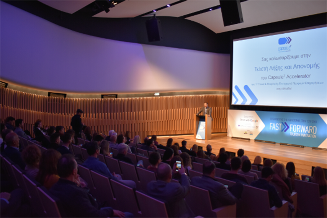 Με την τελετή λήξης και απονομής βραβείων, την Πέμπτη 5 Δεκεμβρίου, ολοκληρώθηκε ο 1ος κύκλος του Προγράμματος Επιτάχυνσης του CapsuleT Travel & Hospitality Accelerator, του πρώτου startup επιταχυντή αποκλειστικά για τον τουρισμό που δημιουργήθηκε από το Ξενοδοχειακό Επιμελητήριο Ελλάδος.