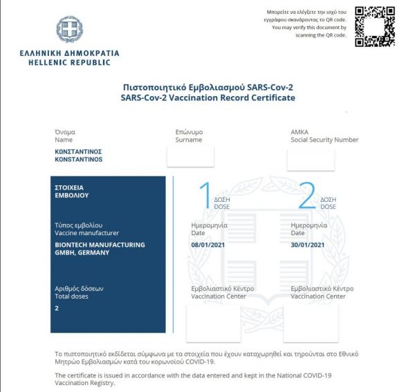Πρόκειται για ιατρικό έγγραφο, λειτουργεί ως βεβαίωση ιατρικής πράξης και αφορά όσους πολίτες έχουν λάβει και τις δύο δόσεις του εμβολίου.