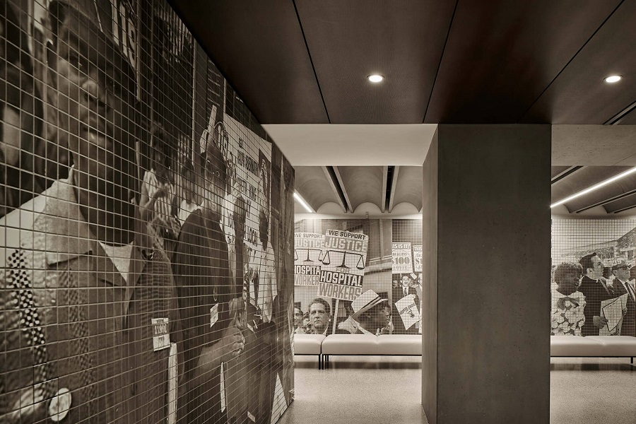 Το αρχιτεκτονικό γραφείο Adjaye Associates– του οποίου ηγείται ο Sir David Adjaye– ολοκλήρωσε τους δημόσιους χώρους του καινούργιου στρατηγείου του 1199SEIU, του μεγαλύτερου συνδικάτου εργαζομένων στον τομέα υγειονομικής περίθαλψης στις ΗΠΑ. Έχοντας έδρα τη Νέα Υόρκη, το συνδικάτο ιδρύθηκε το 1932 και ο Μάρτιν Λούθερ Κινγκ το είχε χαρακτηρίσει ως «την αυθεντική συνείδηση του εργατικού κινήματος». Η σχεδιαστική ιδέα του Adjaye γεννήθηκε από την πολιτικά ενεργή κοινότητα του 1199SEIU και στοχεύει να ενσαρκώσει τις αρχές του, το ήθος του και τα επιτεύγματά του.