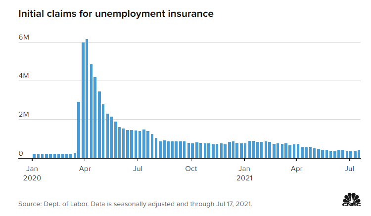 Οι νέες αιτήσεις για επιδόματα ανεργίας έφτασαν στις 419.000 την εβδομάδα που ολοκληρώθηκε στις 17 Ιουλίου. Ήταν πολύ υψηλότερα από την εκτίμηση του Dow Jones για 350.000, ενώ είναι η μεγαλύτερη αύξηση από τις 15 Μαΐου.