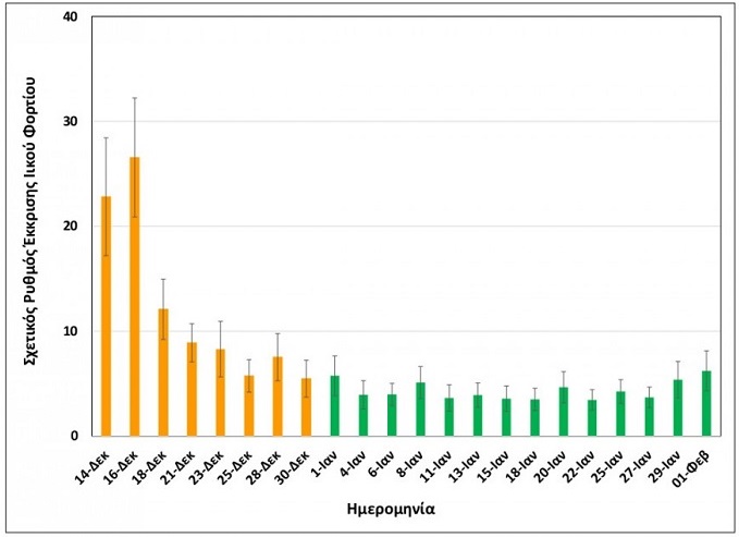 Σε ό,τι αφορά το σημείο εκκίνησης της αυξητικής καταγραφής του ιικού φορτίου ο καθ. Χημείας του ΑΠΘ Θοδωρής Καραπάντσιος εξήγησε ότι «παρ’ όλες τις διακυμάνσεις στις μετρήσεις, που παρατηρούσαμε το προηγούμενο διάστημα, από την Παρασκευή 29 Ιανουαρίου φάνηκε μία τάση η οποία επιβεβαιώθηκε τη Δευτέρα 1 Ιανουαρίου, ημέρες κατά τις οποίες ο αριθμός των ανακοινωμένων κρουσμάτων ήταν ακόμη χαμηλά, δείχνοντας τη δυνατότητα της τεχνικής για έγκαιρο εντοπισμό της διασποράς στην κοινότητα».