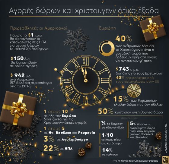 Αγορές δώρων και χριστουγεννιάτικα έξοδα σε Ευρώπη και Αμερική