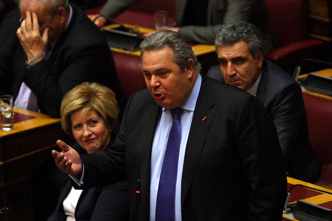 Ο πρόεδρος των ΑΝΕΛ, Πάνος Καμμένος, απαντώντας στην αποστροφή του πρωθυπουργού, δεν έκρυψε την ενόχλησή του καθώς όπως είπε σε μήνυμά του ο πρωθυπουργός του είπε ότι “(ο Π. Καμμένος) χτίζει γέφυρες” τονίζοντας “δεν έχω δώσει τέτοιο δικαίωμα, πάω και τώρα σπίτι” και αφιέρωσε στον πρωθυπουργό στίχους ένα ποίημα για τον αγωνιστή του ’21, Ματρόζο, από τις Σπέτσες. Όπως είπε, όταν ρακένδυτος ο Ματρόζος, έφθασε στο υπουργείο Ναυτικών και ζήτησε τον υπουργό Ναυτικών, αλλά δεν του επετράπη η είσοδος καθώς εθεωρήθη ζητιάνος, απάντησε λέγοντας “αν ζητιάνοι σαν εμέ δεν έχυναν το αίμα, καπεταναίοι σαν εσέ δεν θα φορούσαν στέμμα”.