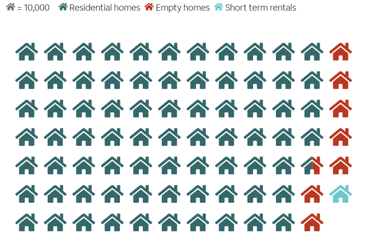 Στη Βαρκελώνη, τα κλειστά σπίτια υπερβαίνουν τις βραχυχρόνιες μισθώσεις κατά αναλογία οκτώ προς ένα (7). Πολιτικές που επικεντρώνονται στην αξιοποίηση αυτών των ακινήτων έχουν μεγαλύτερη πιθανότητα να ενισχύσουν την προσφορά προσιτής στέγασης, σε σχέση με την αυστηροποίηση των βραχυχρόνιων μισθώσεων μέσω της Airbnb.
