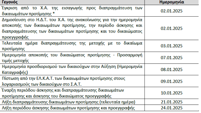 Σημειώνεται ότι οι ανωτέρω ημερομηνίες είναι ενδεικτικές, ενώ το παραπάνω χρονοδιάγραμμα εξαρτάται από πολλούς αστάθμητους παράγοντες και ενδέχεται να μεταβληθεί. Σε κάθε περίπτωση, θα υπάρξει ενημέρωση του επενδυτικού κοινού με σχετική ανακοίνωση, όπως προβλέπεται.
