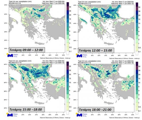 Στους χάρτες που ακολουθούν παρουσιάζεται τον ολικό υετό που αναμένουμε ανά 3ωρο έως το βράδυ της Τετάρτης 17/06.