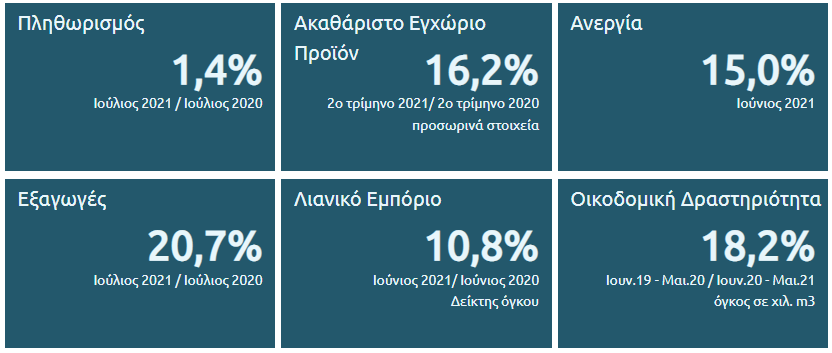 Παράλληλα, όπως ανακοίνωσε η ΕΛΣΤΑΤ με τους τριμηνιαίους εθνικούς λογαριασμούς, μεταξύ β’ τριμήνου 2021 και β’ τριμήνου 2020: