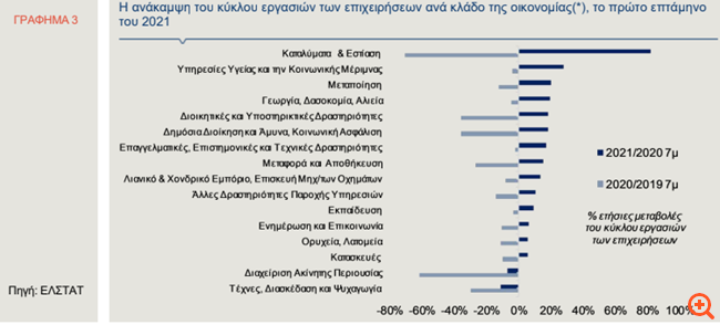 -στην ισχυρή ανάκαμψη του κύκλου εργασιών των επιχειρήσεων στην πλειονότητα των κλάδων, κατά το πρώτο επτάμηνο του 2021 και