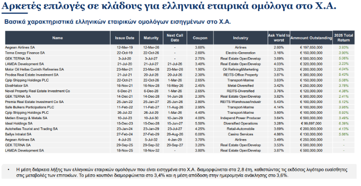 Τα ελληνικά εταιρικά ομόλογα παραμένουν ελκυστικά, επισημαίνει η Alpha Bank σε σχετική έκθεσή της.