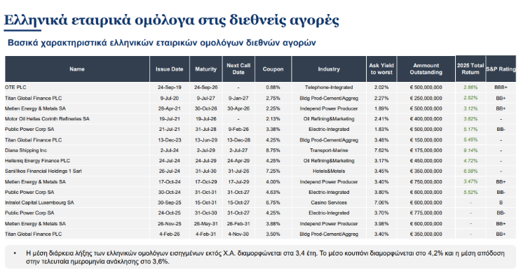 Για το 2026 αναμένεται ενίσχυση της ρευστότητας των ομολόγων στη δευτερογενή αγορά, και η παρουσία του ελληνικού χρέους σε όλη την καμπύλη επιτοκίων.