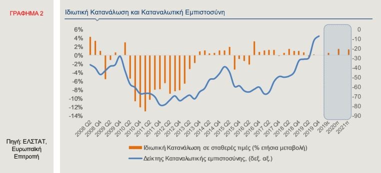 H σημαντική βελτίωση, τόσο του δείκτη επιχειρηματικών προσδοκιών στο λιανικό εμπόριο, όσο και του δείκτη καταναλωτικής εμπιστοσύνης εντός του 2019 και η διατήρησή τους, σύμφωνα με τα πρόσφατα δημοσιευμένα στοιχεία για τον Ιανουάριο του 2020, στα υψηλότερα επίπεδα των τελευταίων 12 και 18 ετών αντίστοιχα, συνάδει με την ελαφρά αύξηση των λιανικών πωλήσεων και την ανοδική πορεία των πωλήσεων επιβατικών Ι.Χ. οχημάτων.