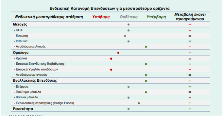 • Στροφή σε άμυνα: Οι επενδυτές προτιμούν ποιοτικές μετοχές, βραχυχρόνια ομόλογα υψηλής διαβάθμισης και διαφοροποίηση χαρτοφυλακίων.