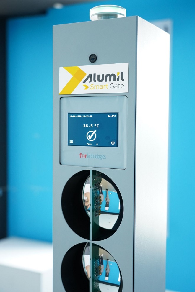 Στο πλαίσιο αυτό, η Alumil δημιούργησε το πρωτοποριακό Smart Gate, ένα σύστημα κατάλληλο για την αποτελεσματική προστασία χώρων που φιλοξενούν αυξημένο αριθμό ατόμων, το οποίο εξασφαλίζει εξ αποστάσεως θερμομέτρηση υψηλής ακρίβειας, χωρίς ακτινοβολία και με συνεχή διέλευση.