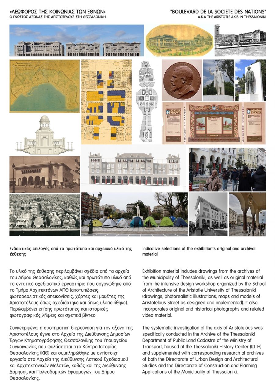 Η προβληματική για το παρόν και τη μελλοντική ανάπλαση της νεοελληνικής πόλης συμπυκνώνεται στον εμβληματικό εγκάρσιο άξονα της σύγχρονης Θεσσαλονίκης. Για την υλοποίηση της έκθεσης προτείνεται η ουσιαστική συμμετοχή του ΑΠΘ και του Δήμου Θεσσαλονίκης σε μια σειρά δράσεων που θα αναδείξουν το μοναδικό αστικό τοπίο της Αριστοτέλους ως δοχείου αστικής ζωής.