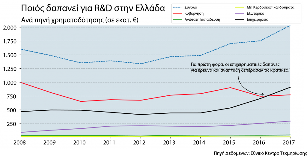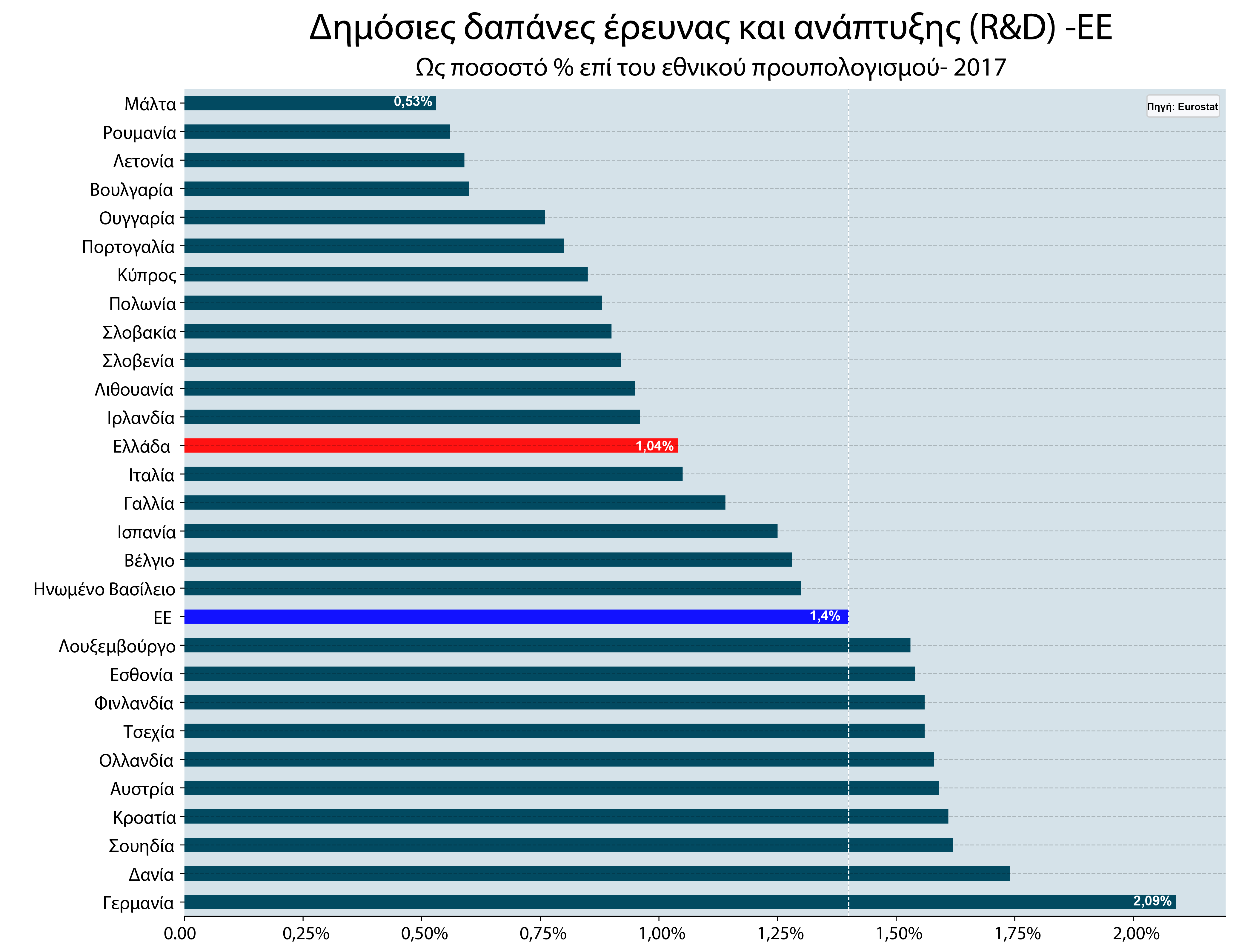 Σε έναν ακόμη και σήμερα εξαιρετικά δυσκίνητο δημόσιο τομέα, η «μάχη» κατά του Brain Drain συναντά αρκετά εμπόδια. Ωστόσο, στο γραφείο του Αναπληρωτή Υπουργού Έρευνας και Καινοτομίας, Κώστα Φωτάκη, υπάρχει μία προσήλωση στον στόχο της παραγωγικής αναχαίτισης του φαινομένου μέσα από την προώθηση ενός προτύπου ανάπτυξης που βασίζεται στην Οικονομία της Γνώσης και της Καινοτομίας. Στη συνάντησή μας, ένα από τα πρώτα πράγματα που τονίζει είναι η αύξηση των δαπανών για την Έρευνα & Ανάπτυξη που, με βάση τα διαθέσιμα στοιχεία, το 2017 έφτασαν το 1,14% του ΑΕΠ – ποσοστό αρκετά μεγαλύτερο από αυτό που δαπανιόταν στην Ελλάδα προ κρίσης, αλλά και πάλι μικρό συγκριτικά με άλλες χώρες της Ευρώπης, όπου η χώρα μας στη σχετική κατάταξη βρίσκεται στη 19η θέση.