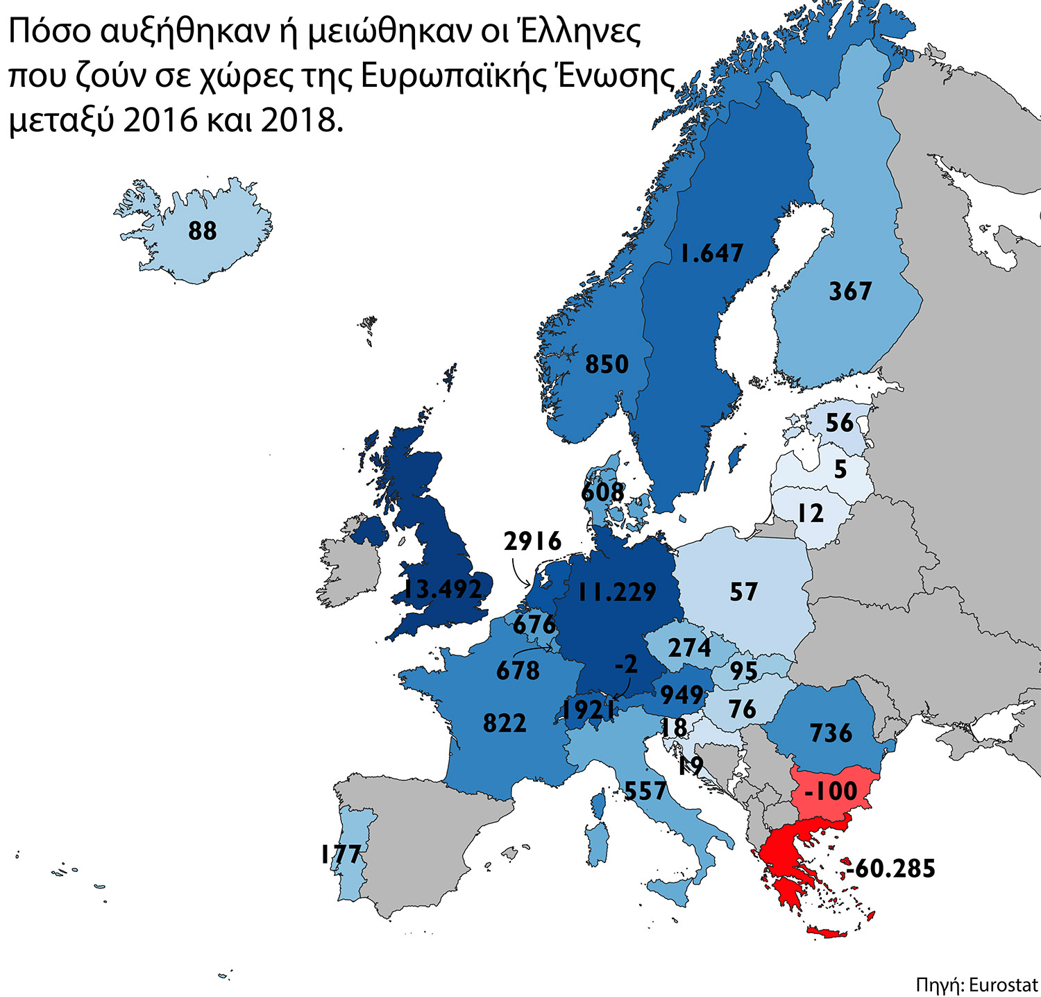 Δείτε στον interactive χάρτη που ακολουθεί σε ποιες χώρες έχουν μετακομίσει οι περισσότεροι Έλληνες μεταξύ 2010 και 2015.