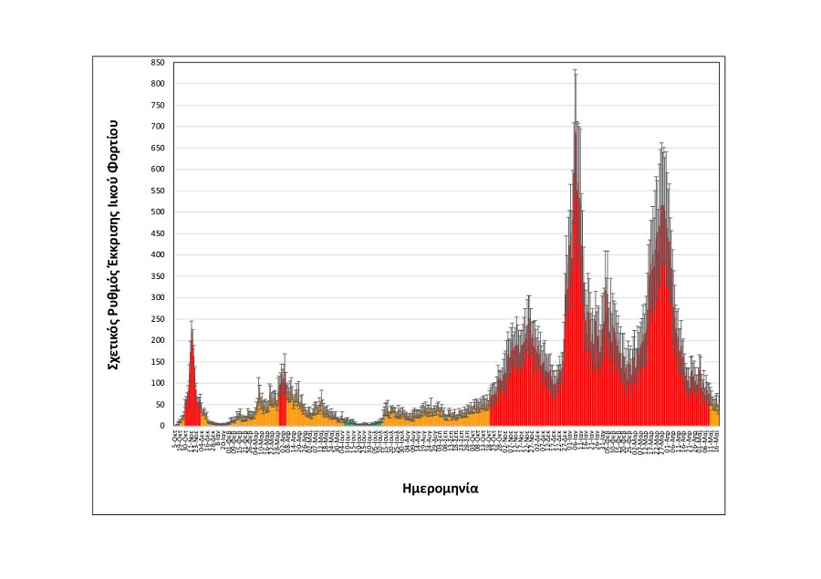 Συγκεκριμένα, στα δείγματα που λαμβάνονται καθημερινά στην είσοδο της εγκατάστασης επεξεργασίας λυμάτων Θεσσαλονίκης, αναφορικά με τις εξορθολογισμένες τιμές σχετικής έκκρισης ιικού φορτίου, η μέση τιμή των δύο πιο πρόσφατων μετρήσεων, δηλαδή της Τετάρτης 18/05/2022 και της Πέμπτης 19/05/2022 είναι: