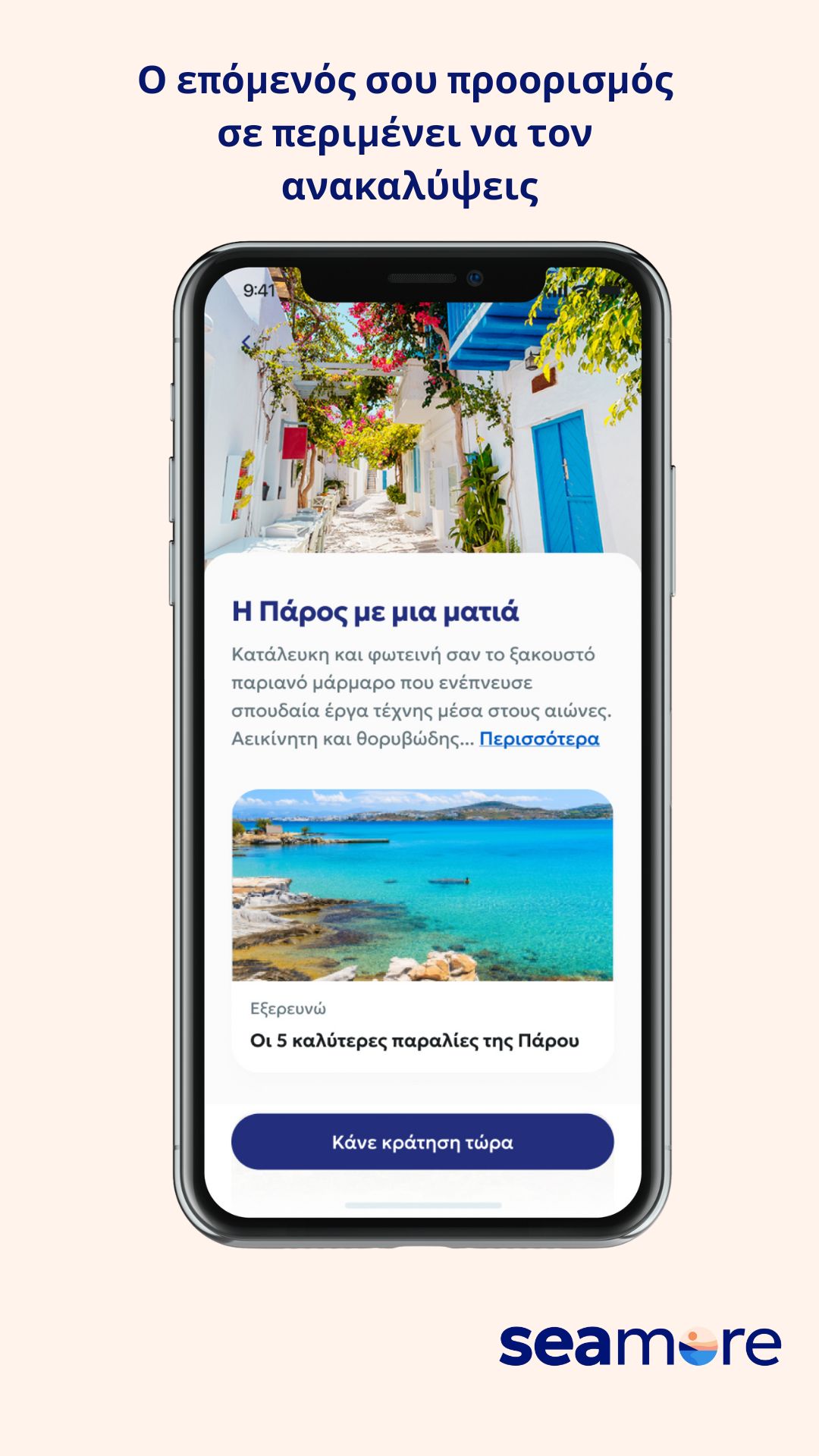 Η εφαρμογή “seamore” θα συνεχίσει να αναβαθμίζει την ταξιδιωτική εμπειρία εμπλουτίζοντας το μενού της με νέα features και υπηρεσίες προς τον επιβάτη καθόλη τη διάρκεια του ταξιδιού, από την κράτηση και το χρόνο εν πλω μέχρι την παραμονή στον προορισμό και την επιστροφή.