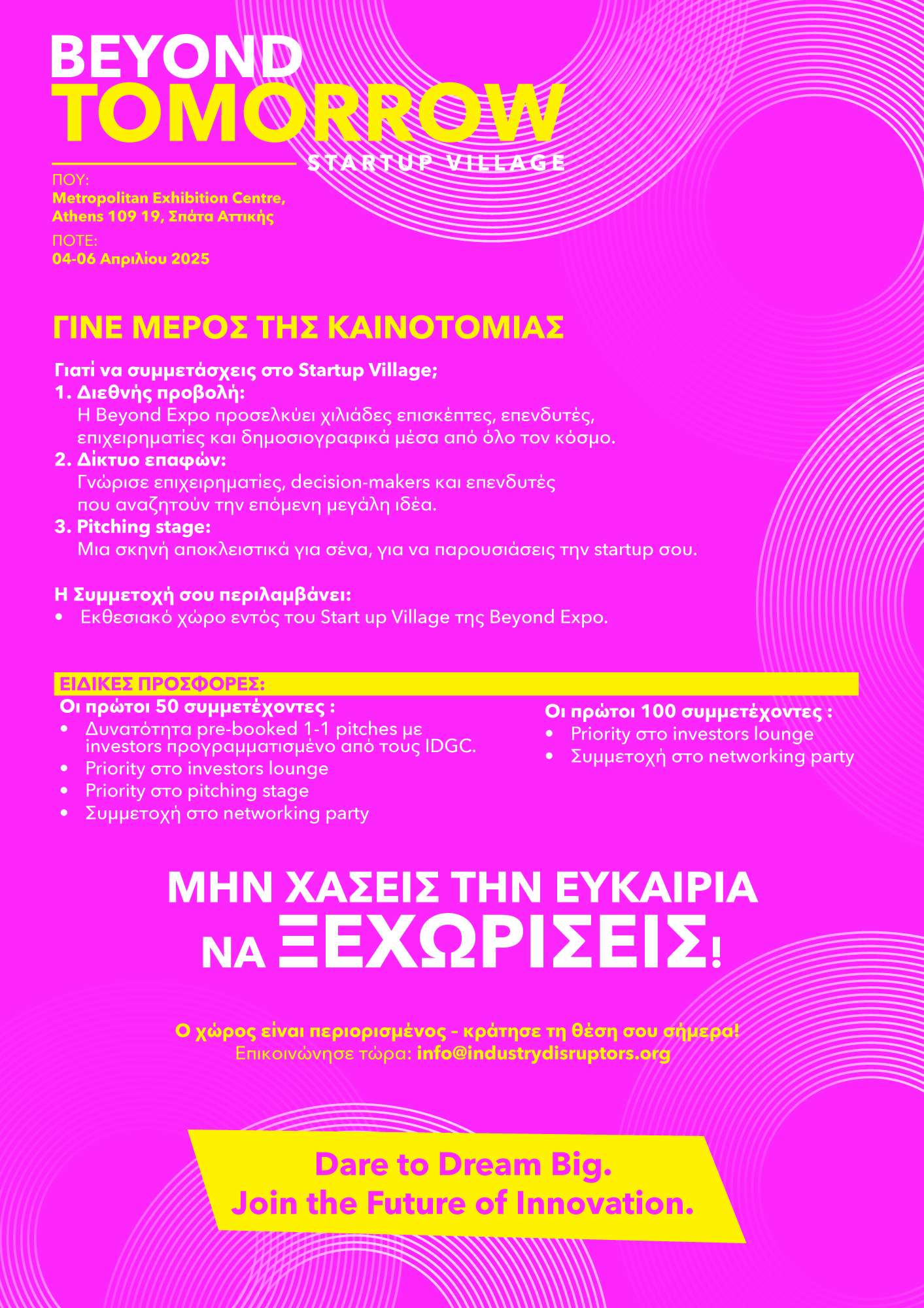 BEYOND TOMORROW STARTUP VILLAGE 2025 – Γίνε μέρος της καινοτομίας