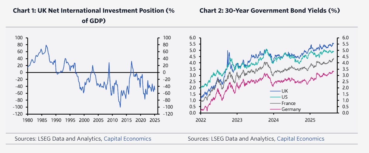 Η δημοσιονομική και εξωτερική θέση του Ηνωμένου Βασιλείου απέχει πολύ από το να χαρακτηριστεί υγιής, ωστόσο οι φόβοι ότι η χώρα θα αναγκαστεί να ζητήσει διάσωση από το ΔΝΤ κρίνονται υπερβολικοί, σύμφωνα με έκθεση της Capital Economics (27 Αυγούστου 2025).