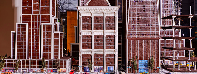 Αντίγραφο του ορίζοντα των κτιρίων της Νέας Υόρκης από gingerbread δημιούργησε γνωστή Αμερικανίδα ζαχαροπλάστης.