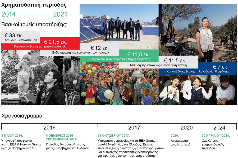 Στις 31 Οκτωβρίου του 2017, οι δότριες χώρες και η Ελλάδα υπέγραψαν Μνημόνιο Κατανόησης (MoU: Memorandum of Understanding) για την προγραμματική περίοδο 2014-2021, η οποία αφορά τη χρηματοδότηση εννέα (9) νέων προγραμμάτων. Το Μνημόνιο υπήρξε το αποτέλεσμα επίσημων διαπραγματεύσεων μεταξύ των ελληνικών αρχών και της Επιτροπής Χρηματοδοτικού Μηχανισμού (FMC: Financial Mechanism Committee) επί τη βάσει των αναγκών της χώρας και των προτεραιοτήτων που αφορούσαν τη στόχευση της εν λόγω χρηματοδότησης.