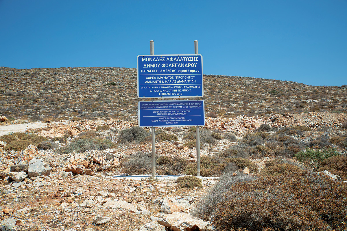 Στο πλαίσιο των δράσεων αυτών, και με στόχο την αναπλήρωση του νερού που χρησιμοποιεί για την παραγωγή των προϊόντων της, το καλοκαίρι του 2022 εγκαινίασε ένα πρωτοποριακό πρόγραμμα προστασίας υδατικών πόρων για το νησί της Φολεγάνδρου. Το πρόγραμμα «Zero Drop», σε συνεργασία με τον διεθνή οργανισμό GWP-Med, και με την αποκλειστική υποστήριξη του Ιδρύματος της Coca-Cola (The Coca-Cola Foundation), έθεσε στόχο να καταστεί η Φολέγανδρος το πρώτο νησί στην Ελλάδα με μηδενικές απώλειες νερού. Μόνο το 2022, μέσω τεχνικών παρεμβάσεων, εκσυγχρονίστηκε το δίκτυο νερού, αυξάνοντας την επάρκεια νερού στο νησί κατά 63%, ποσοστό που μεταφράζεται στην εξοικονόμηση 10 εκατ. λίτρων νερού*.