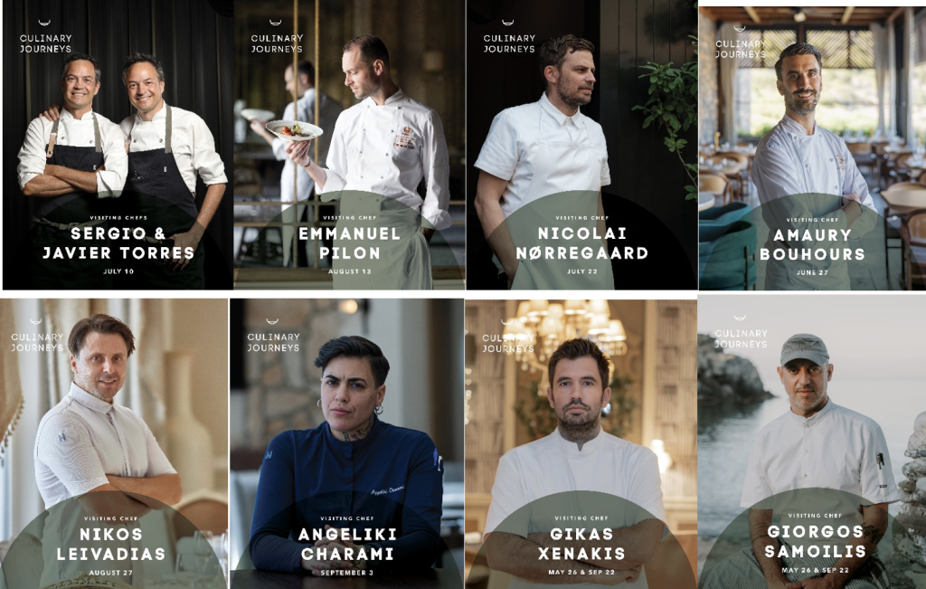 Η φετινή διοργάνωση συγκεντρώνει ένα εντυπωσιακό line-up: οι Sergio και Javier Torres (Cocina Hermanos Torres***, Βαρκελώνη), ο Emmanuel Pilon (Le Louis XV***, Μόντε Κάρλο), ο Nicolai Nørregaard (Kadeau**, Κοπεγχάγη), ο Amaury Bouhours (Le Meurice**, Παρίσι), ο Νίκος Λειβαδιάς (Tudor Hall*, Αθήνα), ο Γιώργος Σαμοΐλης (Cantina, Σίφνος), ο Γκίκας Ξενάκης (Aleria, Αθήνα) και η Αγγελική Χαραμή (Omnia, Kastelruth) συνθέτουν ένα πολυεπίπεδο γαστρονομικό αφήγημα που ενώνει διαφορετικές σχολές, τεχνικές και φιλοσοφίες.