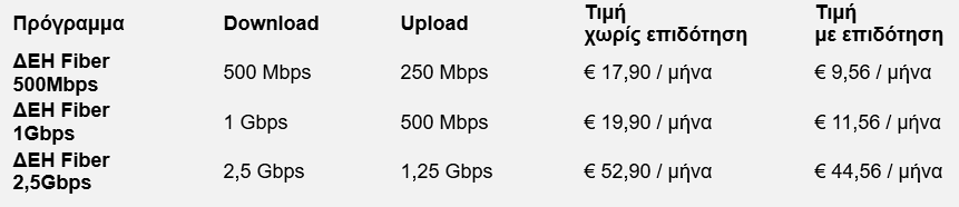 Οι νέες τιμές ΔΕΗ Fiber με Gigabit Voucher