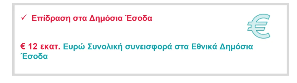 - ενίσχυσε με € 12 εκατ. τα Εθνικά Δημόσια Έσοδα,