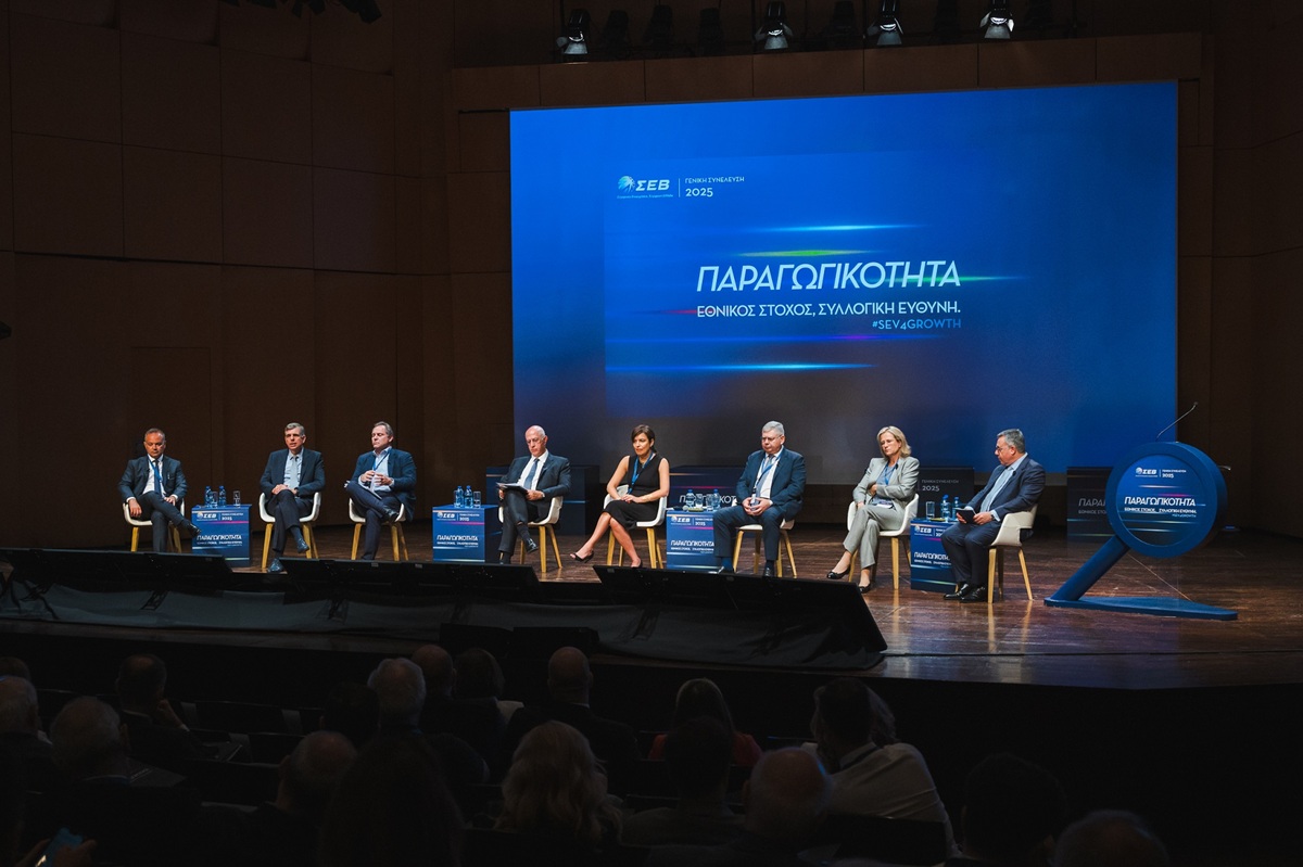 Με αιχμή του δόρατος την παραγωγικότητα και την ανάγκη για ένα νέο παραγωγικό συμβόλαιο Πολιτείας–επιχειρήσεων, ο ΣΕΒ πραγματοποίησε τη Γενική του Συνέλευση στο Μέγαρο Μουσικής, αναδεικνύοντας ως βασικές προκλήσεις την ενεργειακή πολιτική, το νέο χωροταξικό, τις υποδομές και τη μετάβαση στην εποχή της Τεχνητής Νοημοσύνης.