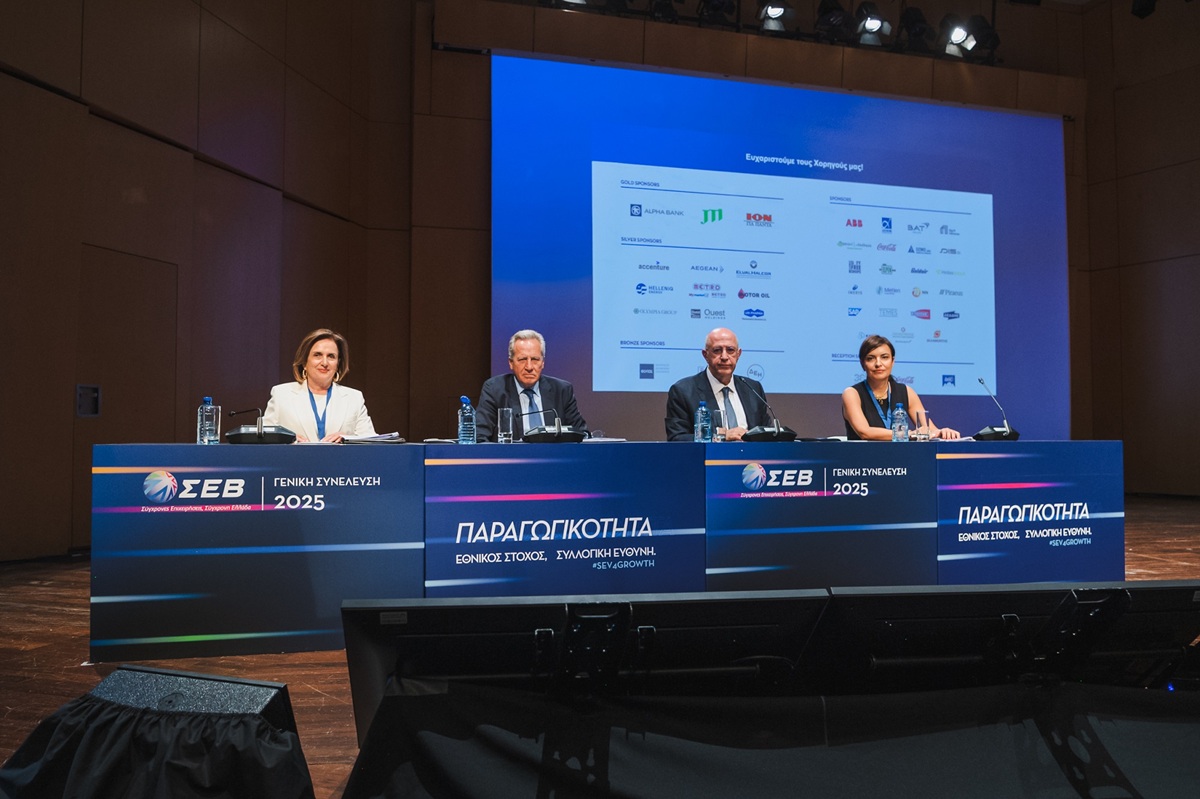 Με κεντρικό μήνυμα «Παραγωγικότητα: Εθνικός Στόχος, Συλλογική Ευθύνη» #SEV4Growth, πραγματοποιήθηκε την Τρίτη 24 Ιουνίου 2025, στο Μέγαρο Μουσικής Αθηνών, η Ετήσια Τακτική Γενική Συνέλευση των Μελών του ΣΕΒ. Κατά τη διάρκεια της Συνέλευσης, η Διοίκηση του Συνδέσμου παρουσίασε αναλυτικά τις δράσεις και τις πρωτοβουλίες του ΣΕΒ για την προηγούμενη χρονιά. Τα μέλη του Συνδέσμου ενέκριναν τον απολογισμό πεπραγμένων και τον προγραμματισμό δράσεων για την περίοδο 2025-2026.