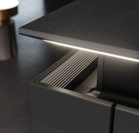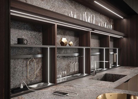 ΦΩΤΙΖΟΜΕΝΟΣ ΠΑΓΚΟΣ ΕΡΓΑΣΙΑΣ: Ένας νέος πάγκος εργασίας, ένα στοιχείο υψηλής αισθητικής. Το σύστημα αποτελείται από ένα αλουμινένιο προφίλ, ενσωματωμένο στον πάγκο εργασίας, που διαθέτει φωτισμό led. Μια καινοτομία που μετατρέπει μια συνηθισμένη επιφάνεια πάγκου εργασίας, σε ένα μοναδικό έργο τέχνης και παράλληλα φωτίζει τα ντουλάπια και τα συρτάρια που βρίσκονται κάτω από αυτή.