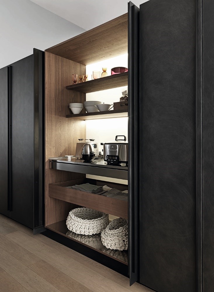 POCKET DOORS: Η σύγχρονη αρχιτεκτονική θέλει τους χώρους ανοιχτούς και ενοποιημένους. Η ανάγκη για τακτικότητα της κουζίνας έδωσε λύσεις με τη χρήση των οποίων η κουζίνα μετατρέπεται όταν δεν χρησιμοποιείται σε ένα ενιαίο έπιπλο αποκρύπτοντας την οποιαδήποτε ακαταστασία υπάρχει κατά την προετοιμασία ενός γεύματος.