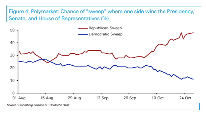 Έτσι, ενώ οι επενδυτές είναι πολύ επικεντρωμένοι στην αντίδραση του 2016 και σε αυτό που συνέβη, αξίζει να θυμόμαστε ότι αυτό ήταν απάντηση σε ένα αποτέλεσμα έκπληξη, λέει η γερμανική τράπεζα. Είναι σαφές ότι οι αγορές θα προβάλουν κάποια αντίδραση, δεδομένης της αβεβαιότητας που υπάρχει, αλλά μια νίκη Τραμπ δεν θα προκαλούσε την ίδια έκπληξη όπως την προηγούμενη φορά.
