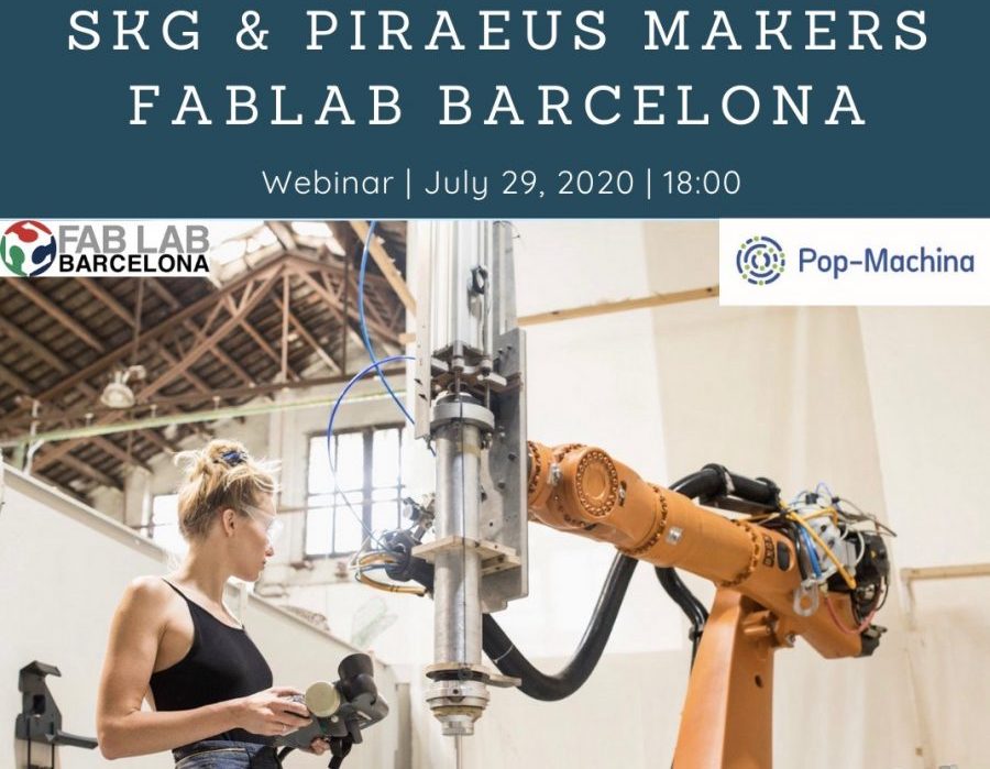 Οι SKG Makers συνδιοργανώνουν μαζί με τους makers του Πειραιά ένα webinar με στόχο την παρουσίαση του μεγαλύτερου FabLab στην Ευρώπη, του FabLab Barcelona, στο πλαίσιο του σχεδιασμού συνεργατικού makerspace μέσω του ευρωπαϊκού προγράμματος Pop- Machina.