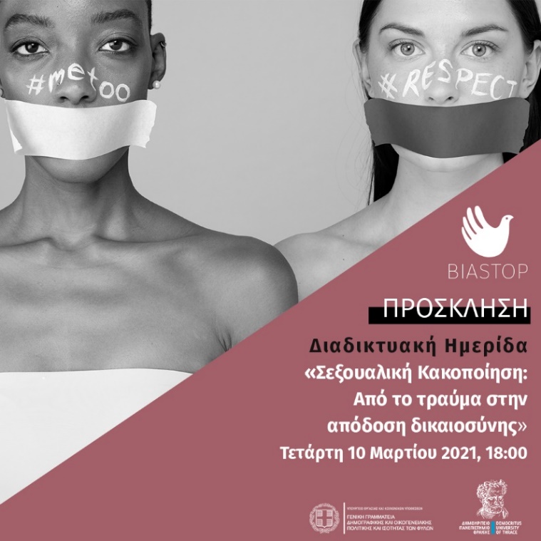 Το Ινστιτούτο Πρόληψης και Θεραπείας της Βίας και Προώθησης της Ισότητας των Φύλων “Βία-Στοπ”, σε συνδιοργάνωση με τη Γενική Γραμματεία Δημογραφικής και Οικογενειακής Πολιτικής και Ισότητας των Φύλων και το Εργαστήρι Ιατροδικαστικών Επιστημών του Τμήματος Ιατρικής του Δημοκριτείου Πανεπιστημίου Θράκης (ΔΠΘ), διοργανώνει επιστημονική ημερίδα με θέμα: