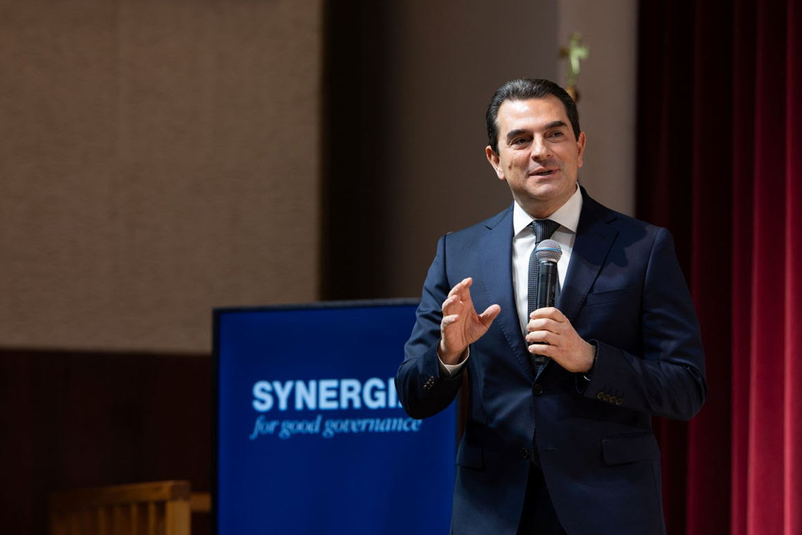 Στην εισαγωγική του τοποθέτηση, ο Πρόεδρος της Synergia, Ορέστης Ομράν, παρουσίασε τους βασικούς άξονες των προτάσεων που περιλαμβάνονται στον συλλογικό τόμο και έδωσε το στίγμα των επόμενων πανελλαδικών δράσεων του Think Tank.