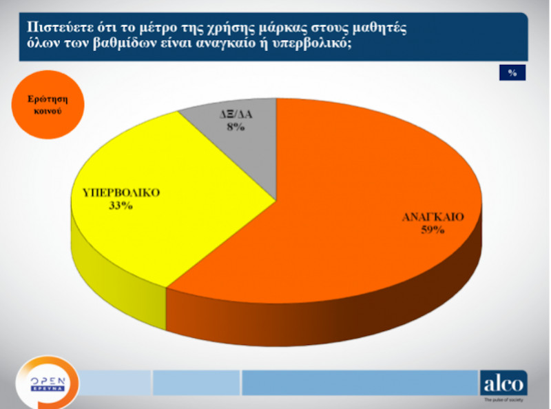 Το 59% των πολιτών θεωρεί τη χρήση μάσκας στα σχολεία ως αναγκαία, ενώ το 33% χαρακτηρίζει το μέτρο «υπερβολικό».