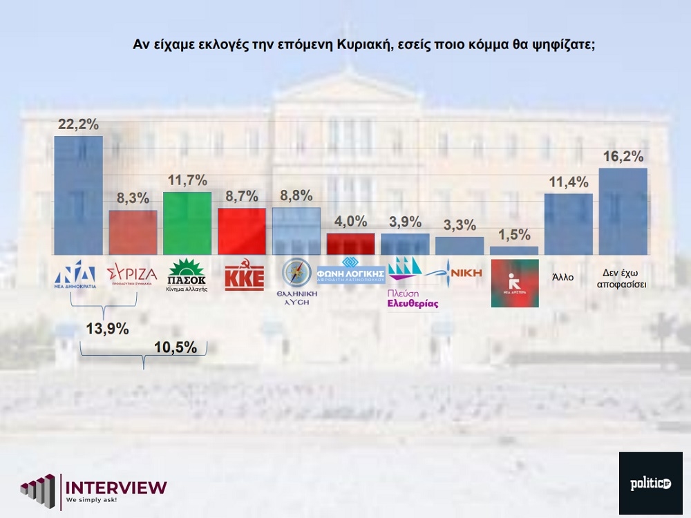 Δημοσκόπηση Interview: Πρώτο κόμμα με μεγάλη πτώση η ΝΔ – Κατρακυλά στην 5η θέση ο ΣΥΡΙΖΑ