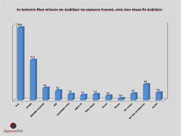 Δημοσκόπηση Opinion Poll: 17,4% προηγείται η ΝΔ του ΣΥΡΙΖΑ- 3 στους 4 λένε «ναι» στον εμβολιασμό