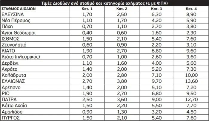 Διόδια 2026 στην Ολυμπία Οδό: Οι νέες τιμές σε Ελευσίνα, Νέα Πέραμο και Πάχη