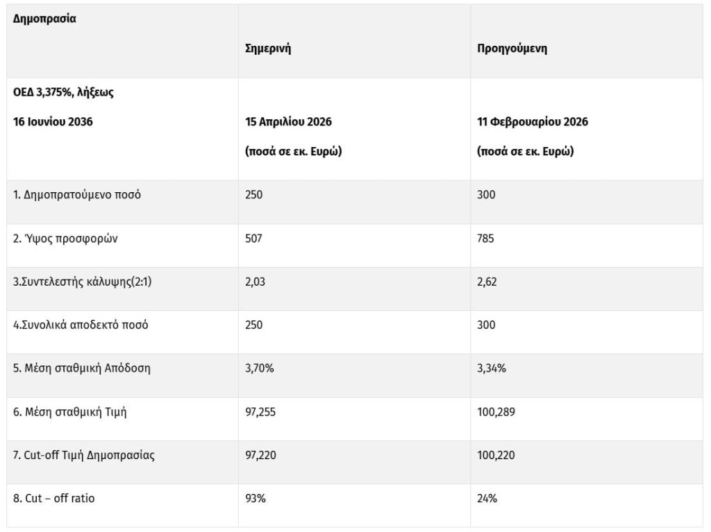 Από την επανέκδοση αντλήθηκε ποσό 250 εκατ. ευρώ.