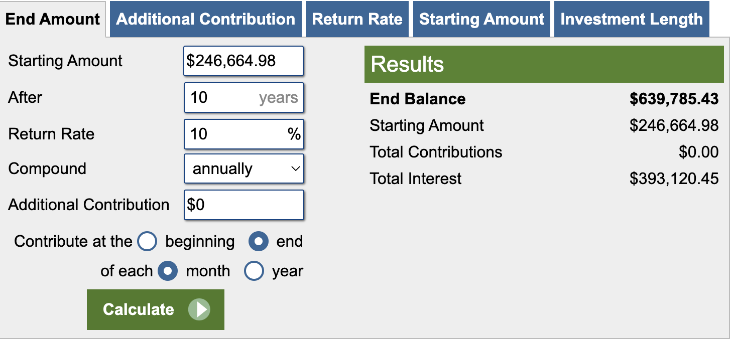 Και αν τώρα το παιδί αφήσει αυτό το χαρτοφυλάκιο ως έχει και δεν προσθέσει καθόλου επιπλέον χρήματα για ακόμα 10 χρόνια, δηλαδή εως τα 35 του, η αξία του θα εκτοξευτεί στα 639.785€!